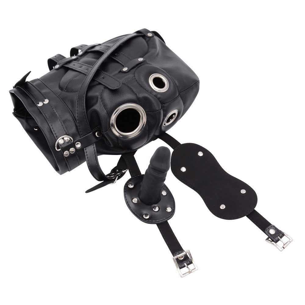 Black Leather BDSM Dildo Gag Mask