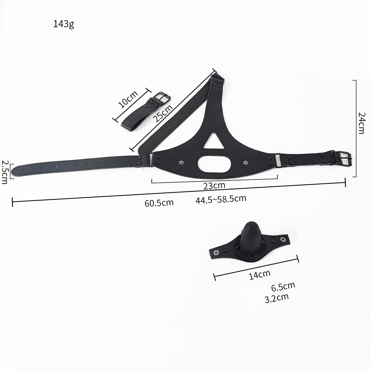 Black Leather Training BDSM Dildo Gag Mask