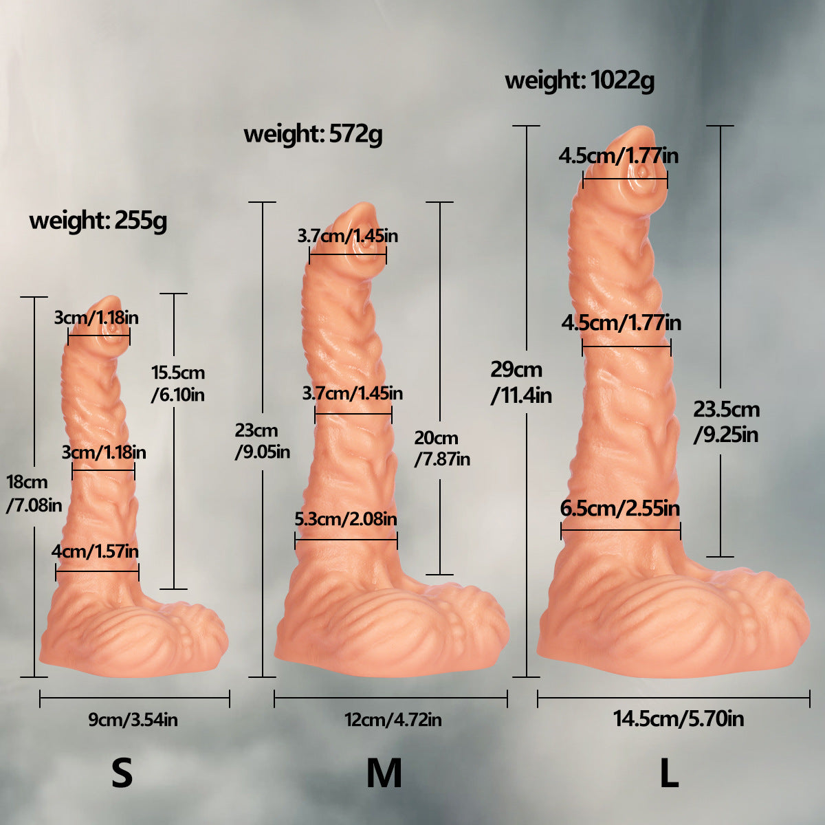 Diameters: 3 cm / 1.18 in (top & mid), 4 cm / 1.57 in (lower)